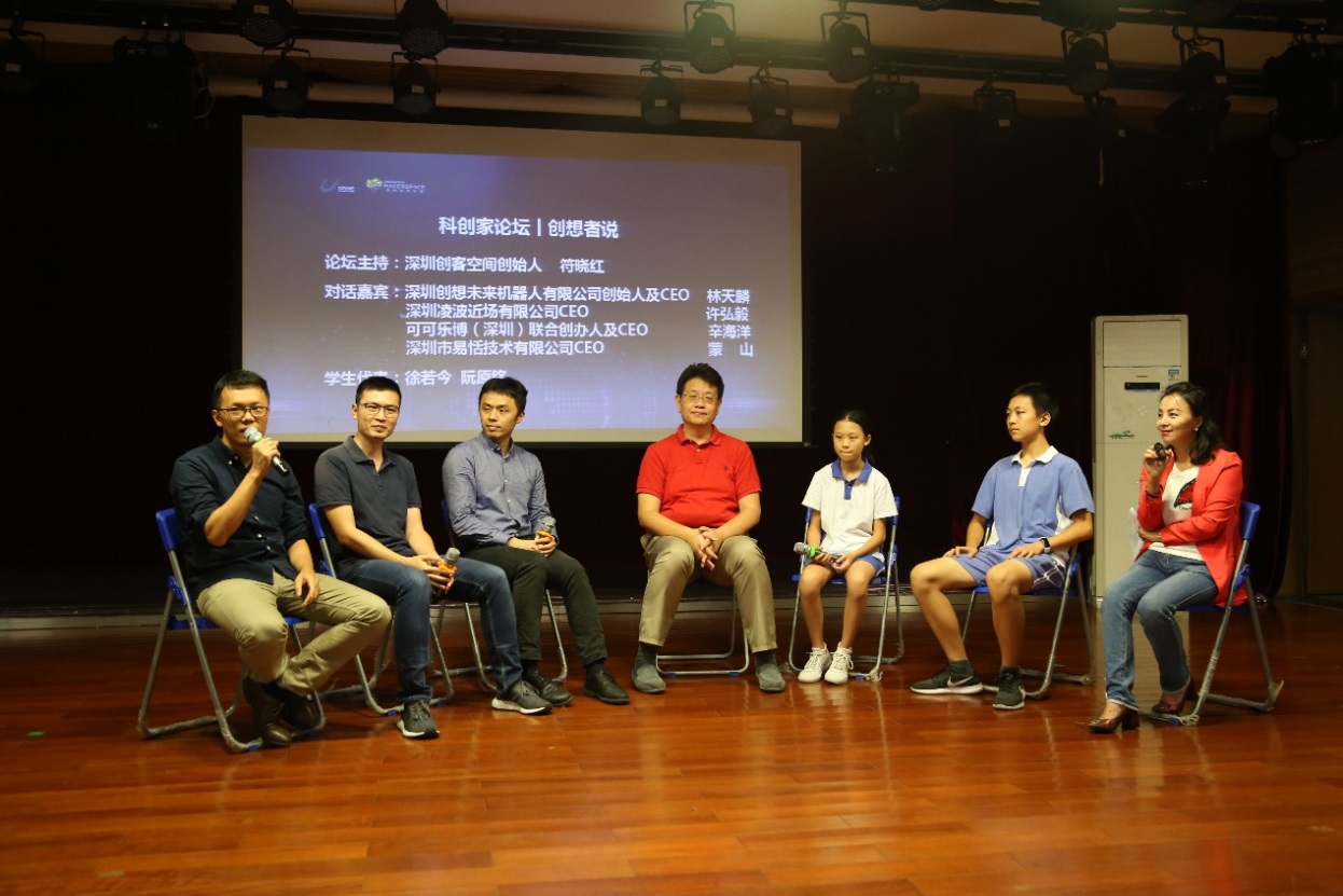 活動(dòng)以“人工智能——科幻未來”為主題,邀請(qǐng)到了人工智能領(lǐng)域的科學(xué)家,優(yōu)秀創(chuàng)業(yè)者等多位嘉賓通過主題分享、論壇對(duì)話以及產(chǎn)品展示體驗(yàn)等形式,給師生們帶來了一場(chǎng)人工智能的知識(shí)分享盛宴。香港中文大學(xué)深圳研究院眾創(chuàng)中心的人工智能創(chuàng)新團(tuán)隊(duì)亮相本次活動(dòng),分別是致力于機(jī)器人操作系統(tǒng) (ROS)的產(chǎn)品化技術(shù)研發(fā)和生態(tài)建設(shè),為高校及企業(yè)提供 ROS課程及技術(shù)解決方案的“深圳創(chuàng)想未來機(jī)器人有限公司”;專注于 STEAM教育的教育科技,致力于透過靈感和科技的有機(jī)結(jié)合,將最新的理念和技術(shù)帶入 STEAM教育領(lǐng)域的“可可樂博(深圳)科技有限公司”;致力于AI語音領(lǐng)域技術(shù)研發(fā),利用優(yōu)于行業(yè)、準(zhǔn)確率大于99.5%的聲紋識(shí)別算法,將人工智能、生物辨識(shí)與復(fù)雜行業(yè)場(chǎng)景進(jìn)行深度融合的“深圳市聲揚(yáng)科技有限公司”。分別在活動(dòng)中做了精彩的主題演講、學(xué)生互動(dòng)及產(chǎn)品展示。