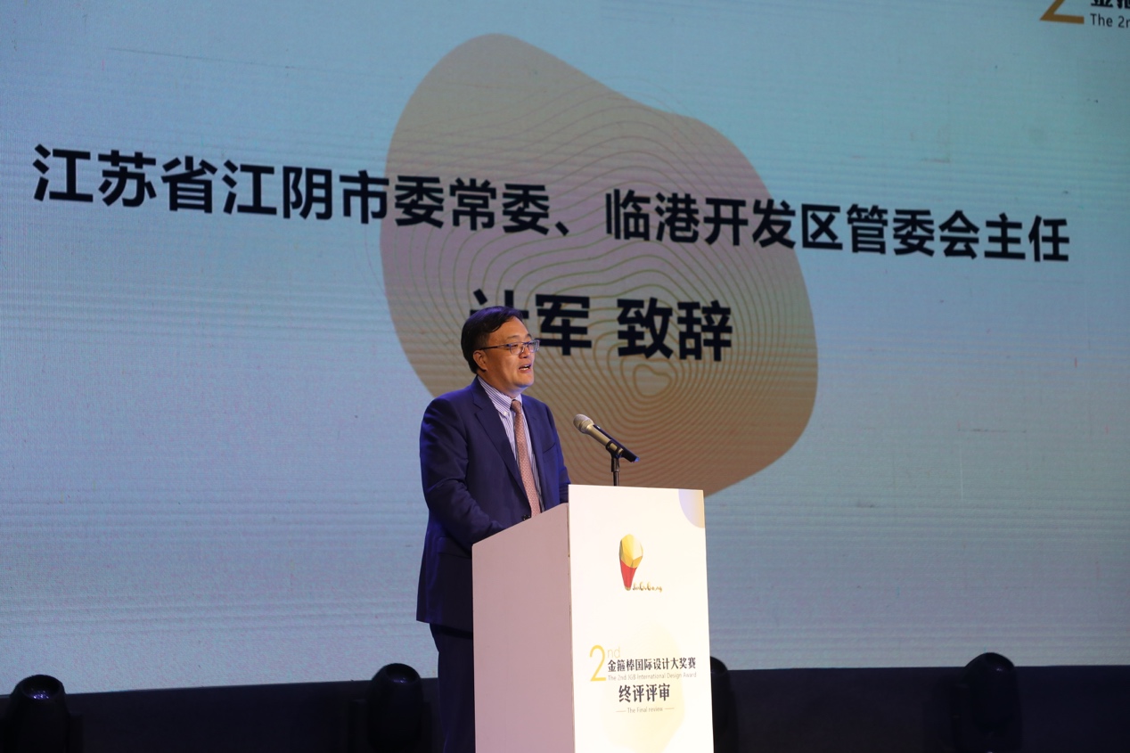 大賽主任評(píng)委、中國(guó)美術(shù)學(xué)院工業(yè)設(shè)計(jì)專業(yè)創(chuàng)始人及學(xué)科帶頭人趙陽教授也登臺(tái)致辭。趙陽教授回顧了與江陰、與金箍棒設(shè)計(jì)的淵源,高度贊揚(yáng)了本屆大賽倡導(dǎo)質(zhì)樸生活、注重設(shè)計(jì)落地的理念,并預(yù)祝比賽成功。