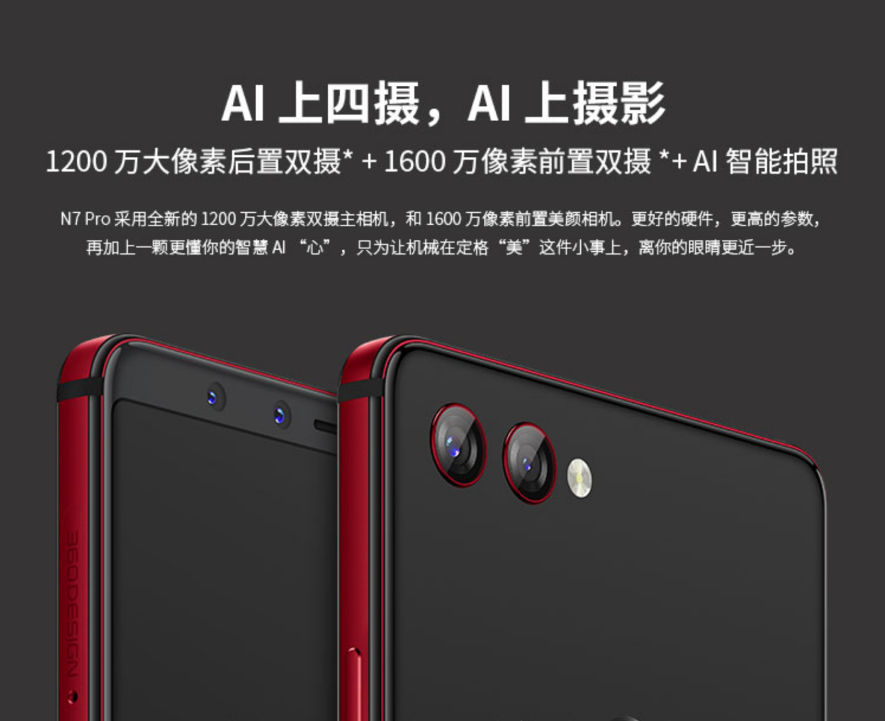 360手機(jī)N7 Pro采用了雙面玻璃機(jī)身設(shè)計(jì),無劉海5.99英寸全面屏,分辨率2160×1080像素,有珊瑚紅和瑪瑙黑兩色可選。作為2018年度的旗艦機(jī)型,配置上,N7 Pro搭載當(dāng)前高通家族中最受關(guān)注的驍龍710處理器,4000mAh大容量電池,支持18W快充,官方宣稱20分鐘可充電30%,100分鐘可充滿。此外在拍照方面,360手機(jī)N7 Pro采用了堪稱耀眼的四攝設(shè)計(jì)。