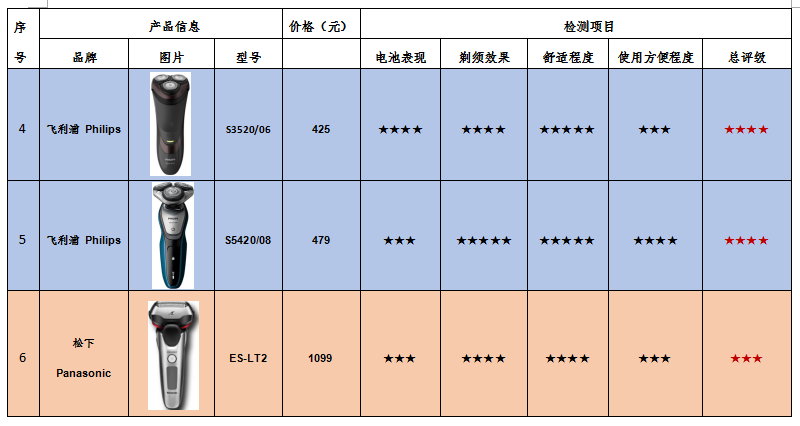 附:ICRT電動(dòng)剃須刀比較試驗(yàn)產(chǎn)品信息及綜合評級表