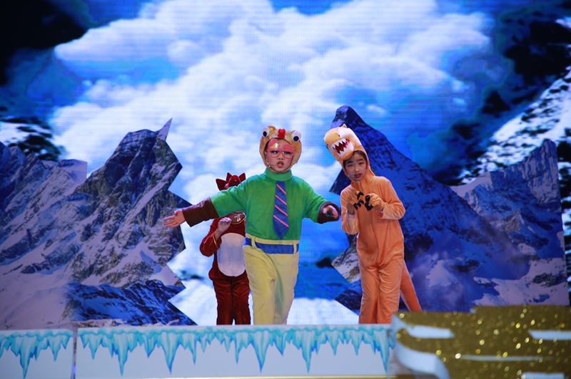 現(xiàn)場(chǎng)表演精彩紛呈,內(nèi)容積極向上,形式豐富多彩,表演生動(dòng)逼真,充分展示出選手們奮發(fā)向上的精神風(fēng)貌,同時(shí)也展現(xiàn)了選手們的外語(yǔ)實(shí)際運(yùn)用能力和自主創(chuàng)新精神?!度虬坠蔷贰ⅰ端廊恕?、《冰河世紀(jì)》、《獅子王》、《皇帝的新裝》、《白雪公主和七個(gè)小矮人》、《小紅帽》、《馬良的神筆》……一個(gè)個(gè)經(jīng)典的童話(huà)故事,惟妙惟肖的表演,生動(dòng)的詮釋著故事里的每一個(gè)角色,把觀眾帶入一個(gè)個(gè)美麗的童話(huà)世界。