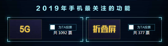 最后,在2019年手機最關注的功能評選中,蘇寧易購選出了5G和折疊屏兩個方向供用戶選擇,這兩大功能正是今年熱議的智能手機兩大方向。目前在用戶投票評選中,5G功能明顯更受關注,其關注度是折疊屏的兩倍以上,這也從一定程度上說明,5G手機的應用需求比折疊屏更加強烈。