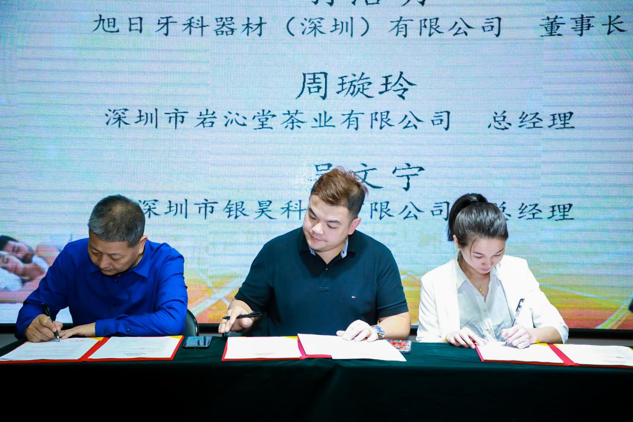 活動現(xiàn)場,深圳市銀昊科技有限公司總經理吳文寧、旭日牙科器材(深圳)有限公司董事長孫浩明、深圳市巖沁堂茶業(yè)有限公司總經理周璇玲、深圳書畫藝術學院財務總監(jiān)孫玲、中國美術教育研究會藝術顧問張成珍教授等與中科睿雅沉香簽訂合作伙伴協(xié)議,共同開拓沉香精油市場。