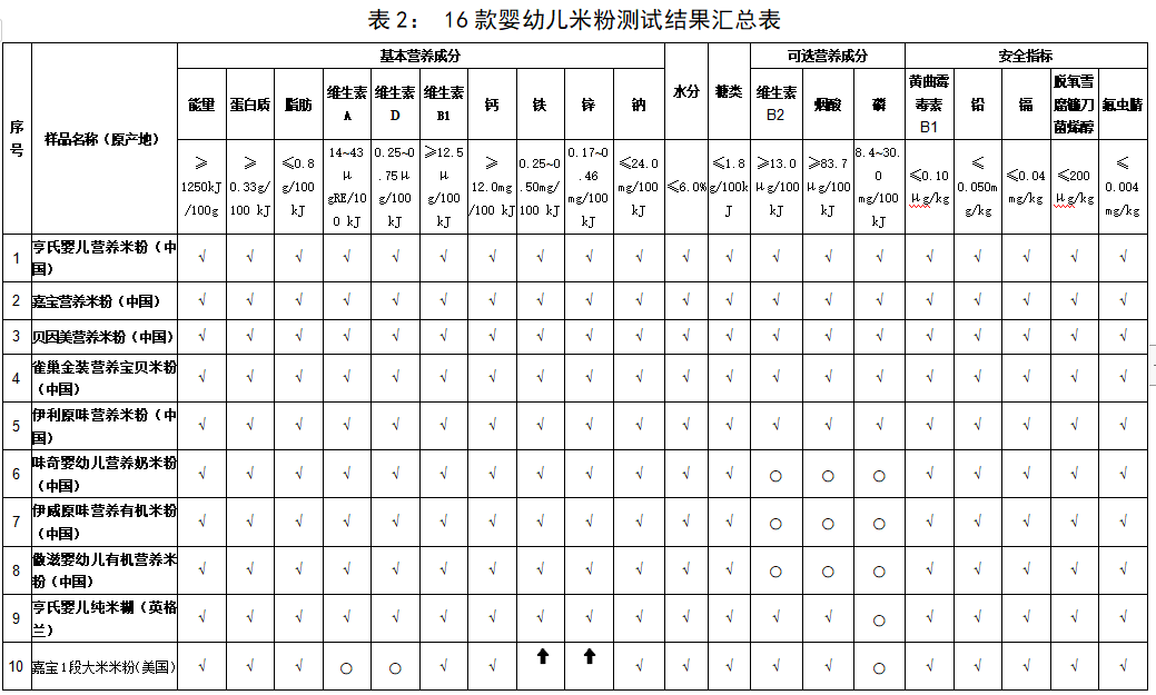 綜合這次比較試驗(yàn)結(jié)果 : 全部16款嬰幼兒米粉均通過(guò)安全要求更高更嚴(yán)的歐盟標(biāo)準(zhǔn)測(cè)試 ; 10款嬰幼兒米粉基本營(yíng)養(yǎng)成分全部符合國(guó)標(biāo)要求,營(yíng)養(yǎng)成分更多更全,更適合中國(guó)嬰幼兒的營(yíng)養(yǎng)健康需求;7款嬰幼兒米粉未檢出額外添加的糖;6款嬰幼兒米粉品質(zhì)領(lǐng)跑,分別是:國(guó)產(chǎn)的雀巢金裝寶貝營(yíng)養(yǎng)米粉、嘉寶營(yíng)養(yǎng)米粉、貝因美營(yíng)養(yǎng)米粉、伊利原味營(yíng)養(yǎng)米粉、 亨氏嬰兒營(yíng)養(yǎng)米粉以及原產(chǎn)英格蘭的亨氏嬰兒純米糊。
