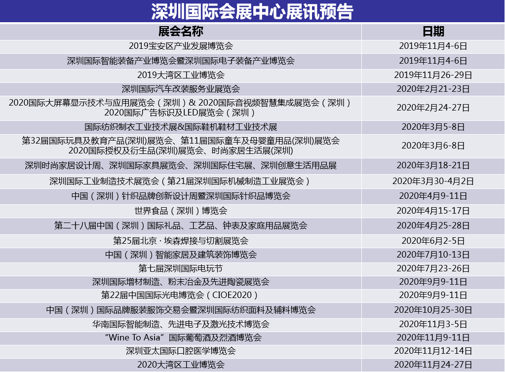 多場(chǎng)重磅展會(huì)將登陸深圳國(guó)際會(huì)展中心