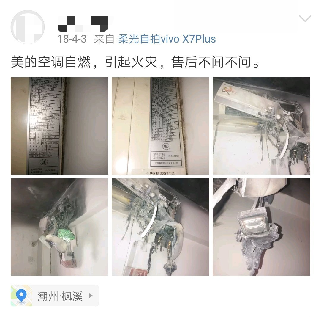 ▲多位網(wǎng)友投訴美的空調(diào)自燃