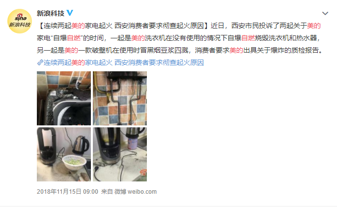 ▲黑貓投訴平臺(tái)上有多條關(guān)于美的電器自燃的投訴