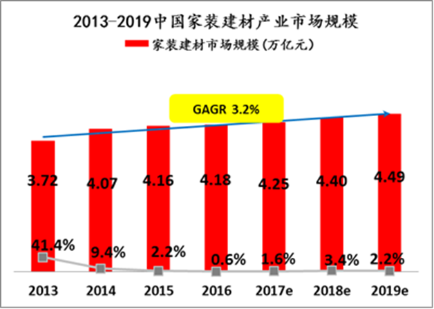 億歐智庫數(shù)據(jù)顯示,目前家裝市場(chǎng)復(fù)合年增長率維持在3.2%,2019年家裝市場(chǎng)銷售規(guī)模接近4.5萬億,但家裝建材互聯(lián)網(wǎng)滲透率小于10%,經(jīng)營模式以傳統(tǒng)的區(qū)域性“散打”為主,無法滿足90后主體消費(fèi)者互聯(lián)網(wǎng)化、社交化、全國性購買的需求,家裝行業(yè)大整合的呼聲越來越高。