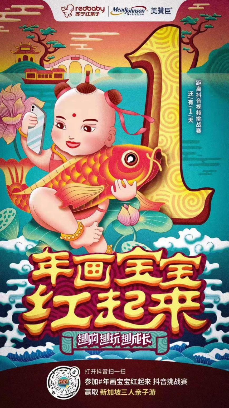 上周,蘇寧紅孩子官方發(fā)起了一場(chǎng)“年畫寶寶紅起來”的抖音挑戰(zhàn)賽活動(dòng)。12月10日-12月31日,在抖音搜索話題,使用蘇寧紅孩子專屬貼紙,讓萌娃變身年畫寶寶,發(fā)布曬娃視頻,就能參與。參與活動(dòng)就有機(jī)會(huì)贏取全家新加坡親子游大獎(jiǎng),寶萌照更有機(jī)會(huì)登上戶外大屏,紅動(dòng)全城。