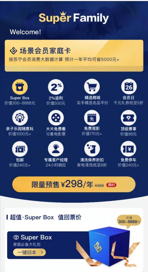 年初,蘇寧易購?fù)瞥?S UPER VIP專屬會員特權(quán),母嬰家庭只需辦理價值149元的 Super VIP會員卡,再加150元,即最高花費(fèi)299元,就能在蘇寧紅孩子游樂不限時間、不限次數(shù)的玩上一整年。貫穿全年的紅粉會員答謝會,通過海量母嬰正品、專業(yè)的育嬰師服務(wù)和特色會員福利活動圈粉超千萬。而最新升級的蘇寧Super Family會員更是以承包一家人的衣食住行為出發(fā)點(diǎn),融合了蘇寧體育、蘇寧影城、蘇寧金融、蘇寧紅孩子、蘇寧廣場等業(yè)態(tài),共12項(xiàng)特權(quán),發(fā)力會員場景零售,打造了完善的會員生態(tài)服務(wù)。