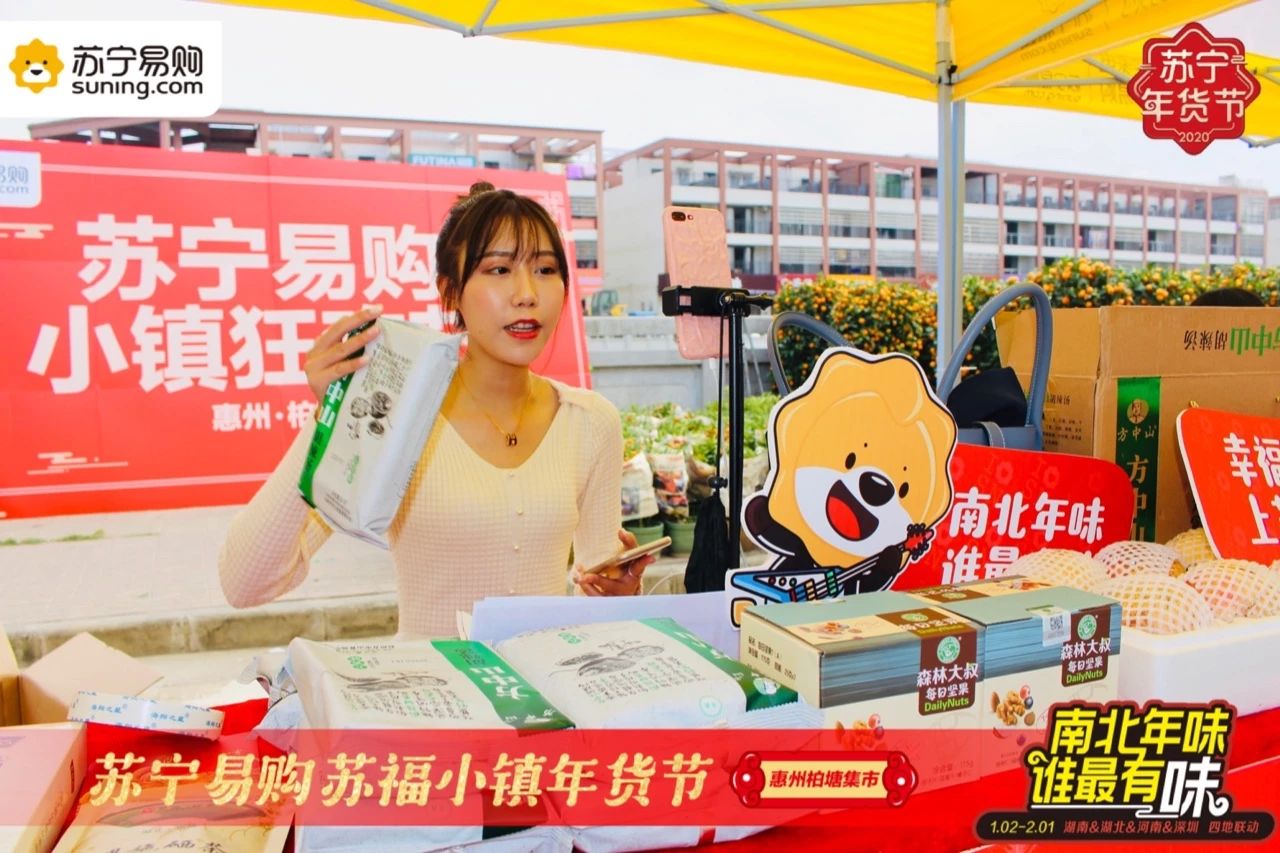 活動(dòng)現(xiàn)場(chǎng),近30家攤位一字排開(kāi),有來(lái)自湘西的臍橙、焦作的鐵棍山藥、武漢的熱干面、深圳的深圳手信產(chǎn)品,琳瑯滿目的各地產(chǎn)品擺放得滿滿當(dāng)當(dāng)。此外蘇寧還邀請(qǐng)到專業(yè)主播與惠州當(dāng)?shù)氐霓r(nóng)產(chǎn)品賣家互動(dòng),品嘗各地美食、體驗(yàn)廣東特色花市,打造特色的土潮風(fēng)格直播間,讓線上線下都能感受到濃濃年味。家住惠州博羅縣的趙大媽告訴記者,他們經(jīng)常來(lái)柏塘市場(chǎng)購(gòu)買新鮮蔬菜和家禽,這里不僅選擇較多而且在一些品類上還有價(jià)格優(yōu)勢(shì)?!榜R上就要過(guò)年了,來(lái)這里可以采集到全國(guó)各地的美食年貨,讓家人過(guò)個(gè)肥美的新年?!?/p>