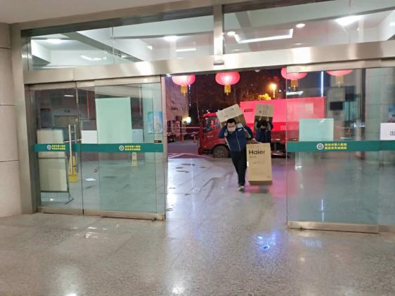 接到需求后,武漢國美攜手海爾迅速作出反應,調(diào)撥就近庫存12臺空調(diào),捐贈給枝江市人民醫(yī)院。武漢安迅物流兩位送裝工程師接到任務后,在所有道路和小區(qū)均封閉的情況下排除萬難,以最快速度驅(qū)車于9日下午12臺空調(diào)送達到枝江市人民醫(yī)院。