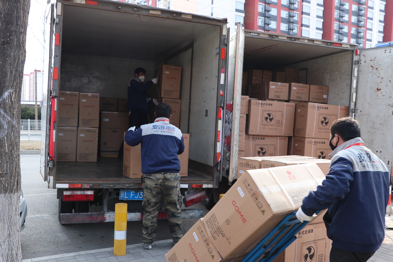 一大早,天剛剛亮,國美北京安迅物流金盞物流園門前2輛物流車又開始了忙碌的物資搬運(yùn)工作。國美送裝工程師徐海亮說:“今天的配送時(shí)間緊任務(wù)重,大家天沒亮就來到物流園,生怕耽誤了發(fā)車。我們都希望為北京當(dāng)?shù)氐囊咔榉揽刈鳇c(diǎn)事?!彼麉⑴c了前日的第一批物資配送工作,又自告奮勇地加入了此次送裝工作。經(jīng)過2小時(shí)的車程,國美送裝工程師們又開始投入了緊張的家電安裝工作中,他們不但將每一臺電器安裝到位,還反復(fù)調(diào)試并詳細(xì)講解使用方法。當(dāng)天下午2點(diǎn),捐贈的物資全部安裝完畢。