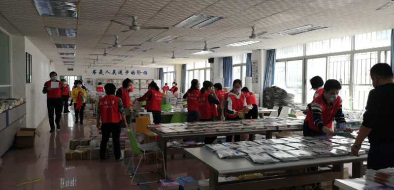 在課室、在體育場、在走廊,甚至就在學(xué)校的馬路邊,深圳郵政人與老師們一起,將一份份承載著知識與希望的課本分類擺放、認真核對,揀書、裝袋、打包、貼單、搬運,一個個環(huán)節(jié)銜接默契。