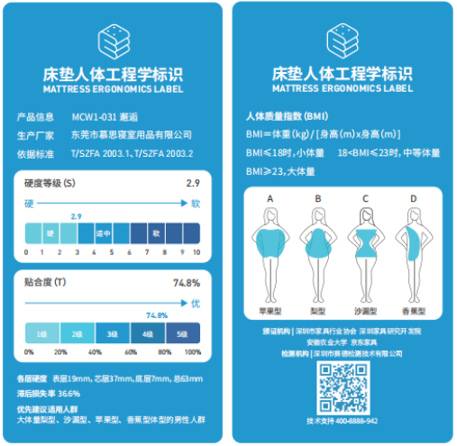 3月15日,京東品質(zhì)認證與深圳賽德檢測聯(lián)合發(fā)布的“健康睡眠新標準”京東直播上,首次發(fā)布“床墊人體工程學標識”,直播過程中,檢測專家團結(jié)合人體質(zhì)量指數(shù)BMI和人體體型等,科普床墊選購方法,讓消費者在了解自身身體情況基礎上,選購適合自身的床墊。