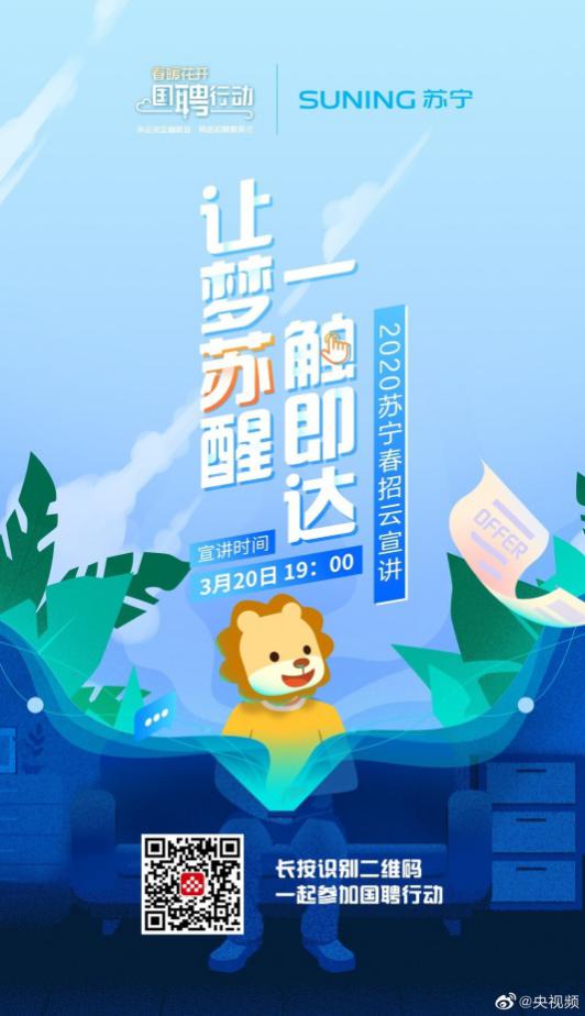 作為與民生、就業(yè)密切相關(guān)的大型零售企業(yè),蘇寧早在2月8日便啟動了無接觸春招,3月20日,蘇寧更是通過央視頻國聘行動開啟線上宣講。目前,線上面試與offer發(fā)放正在持續(xù)進(jìn)行中。