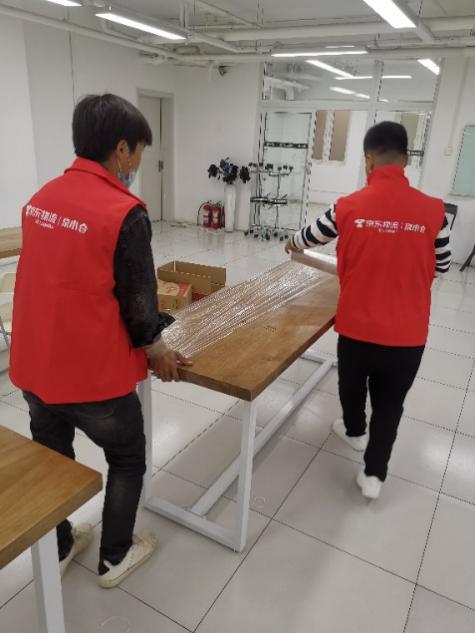 京東小哥在某教育咨詢有限公司現(xiàn)場打包