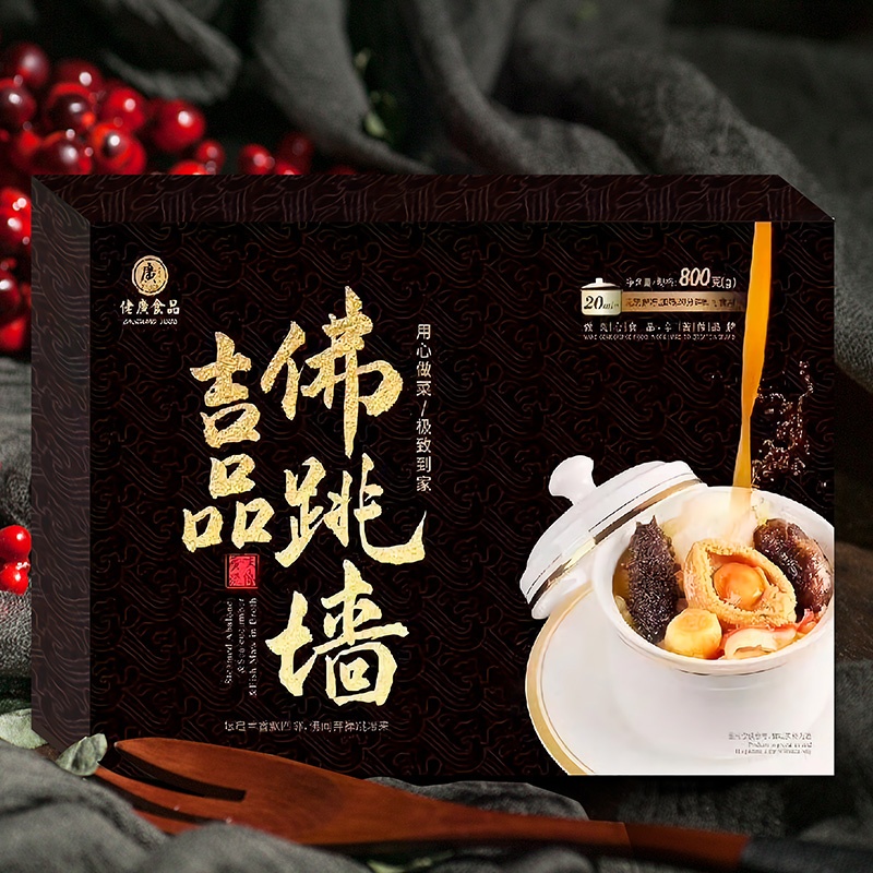 家樂(lè)福此番以“佛跳墻”打響頭炮。古人曰:“壇啟葷香飄四鄰,佛聞棄禪跳墻來(lái)”。佛跳墻作為滿(mǎn)漢全席的主菜之一,匯聚鮑魚(yú)、海參、魚(yú)肚、鮑螺、干貝、牛蹄筋、杏鮑菇、素翅等數(shù)十種珍貴食材煨于一蠱,吃起來(lái)軟嫩柔潤(rùn),湯汁濃郁鮮香。