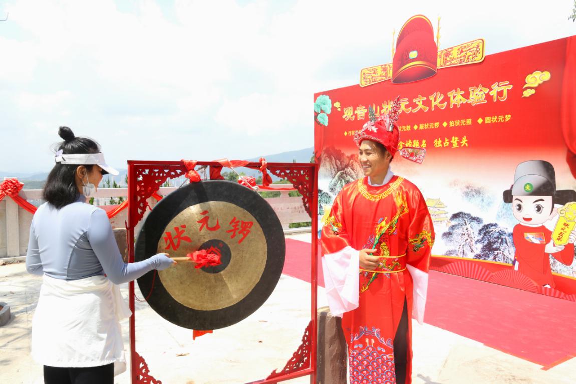 見圳客戶端·深圳新聞網(wǎng)2020年5月18日訊 初夏微涼,清風(fēng)拂面,正是出門登高、遛娃的好時(shí)候。5月16日,適逢開學(xué)季,東莞樟木頭觀音山景區(qū)熱鬧非凡,迎來了一場(chǎng)別樣的文化體驗(yàn)之旅——觀音山狀元文化體驗(yàn)行,吸引了眾多親子家庭、漢服同袍、游客參加。現(xiàn)場(chǎng),行狀元禮、過狀元廊、擊狀元鼓、敲狀元鑼、拍狀元照、禮敬先師等豐富多彩的狀元文化體驗(yàn)環(huán)節(jié),讓在場(chǎng)的親子家庭、漢服同袍及圍觀的游客驚嘆不已,不僅能收獲豐富的傳統(tǒng)文化知識(shí),體驗(yàn)古人高中狀元、金榜題名的幸事,現(xiàn)場(chǎng)還有“狀元郎”現(xiàn)身,帶著孩子們穿越時(shí)空,品傳統(tǒng)文化、圓狀元夢(mèng),開啟狀元文化體驗(yàn)之旅。