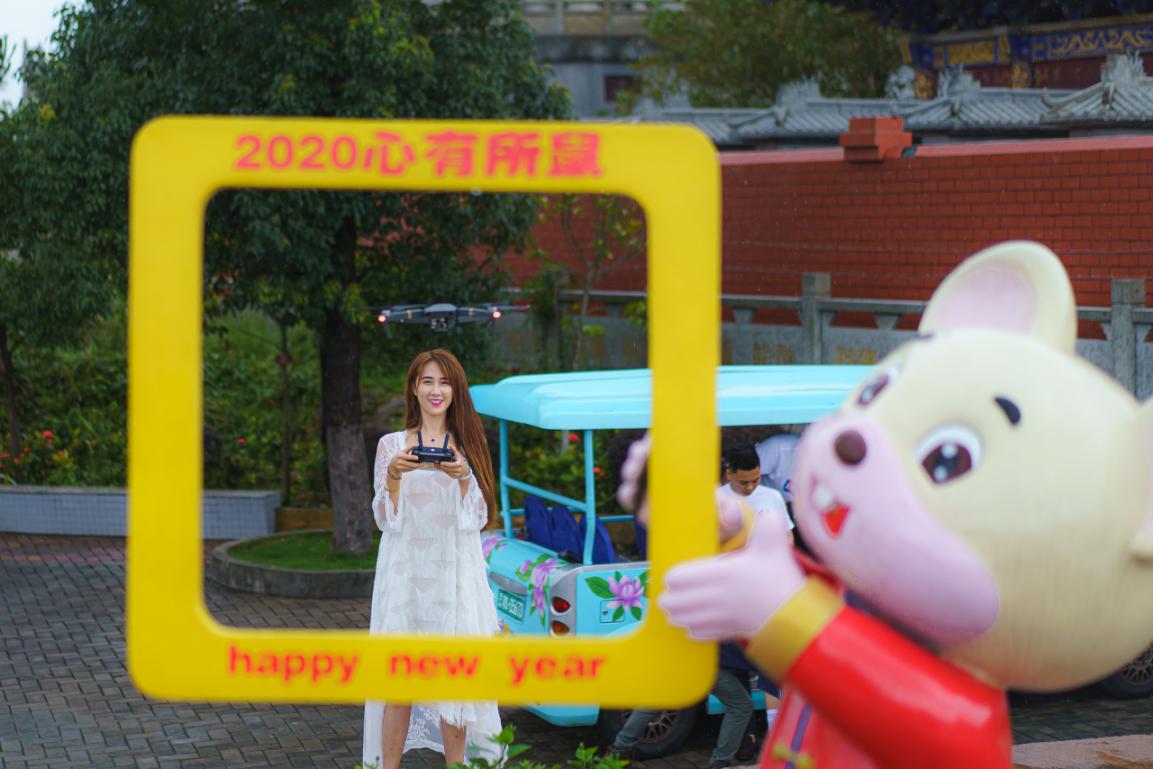無人機大咖們熟練的操縱技巧、輕巧靈便的無人機,也成為了游客眼中一道靚麗的風景線。其中一位曼妙的身影引起了大家的注意,她是網(wǎng)紅“女飛手”頓頓,慕名前來觀音山采風賞景。小巧的無人機從她的掌中起飛,在高空記錄著對這座青山的心動。頓頓表示,走進觀音山非常開心,這座山不僅風景秀美,空間大,雨后的山體走勢也格外驚艷壯觀,非常適合航拍,航拍效果給力。在沿途航拍途中,單身的頓頓對觀音山姻緣文化非常感興趣,并在月老臺前許下“脫單”的心愿。