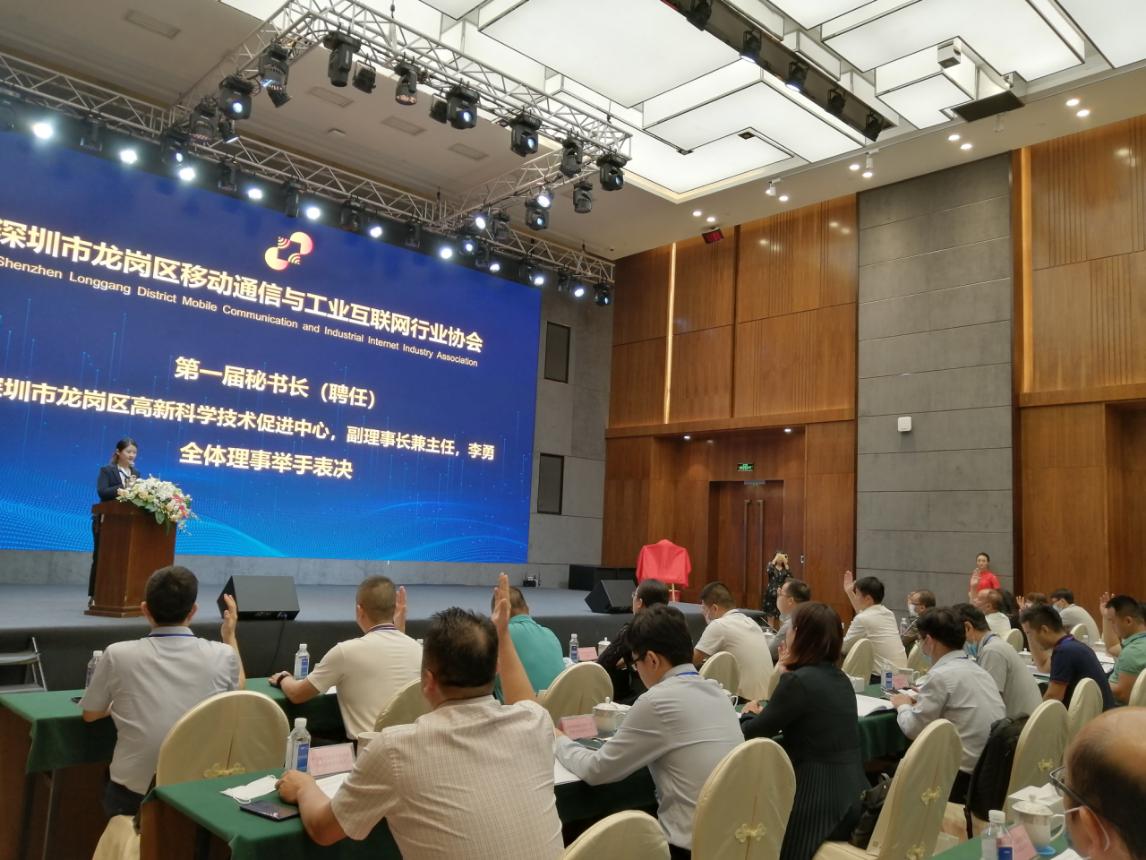 活動中,華為技術有限公司周亞靈當選協(xié)會第一屆理事會會長、天安駿業(yè)集團楊毅總裁當選第一屆常務副會長。邱少雄副局長、陳一木秘書長、周亞靈會長、楊毅常務副會長一起為龍崗區(qū)移動通信與工業(yè)互聯(lián)網(wǎng)行業(yè)協(xié)會揭牌。