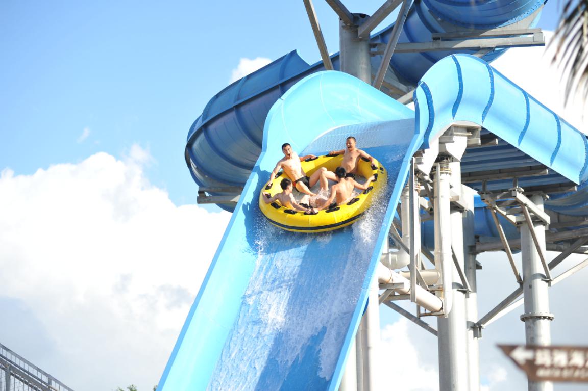 游客可以體驗(yàn)到數(shù)十個(gè)水上娛樂(lè)項(xiàng)目,或跟隨水上過(guò)山車(chē)“雨林巨蟒”感受風(fēng)馳電掣的速度,或前往“萬(wàn)神滑板”體驗(yàn)高速俯沖滑翔的刺激,也可以和小朋友一起,在三大親子戲水區(qū)暢爽戲水清涼。