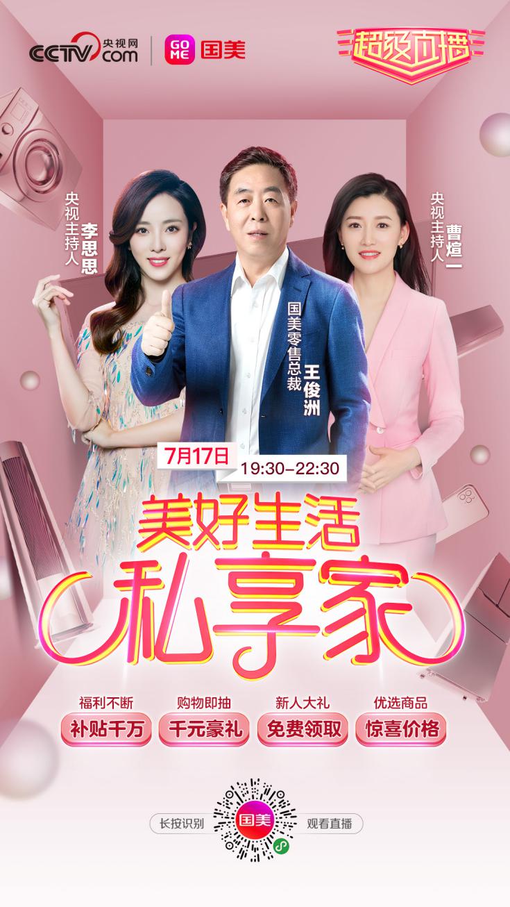 據了解,7月17日晚19:30,國美將再度攜手央視網,共同打造以“美好生活私享家”為主題的超級直播。國美零售網紅總裁王俊洲再現江湖,央視主持人李思思、曹煊一助陣“砍價”。此外,“國美小虎”也將帶著多款家電和日用熱銷商品現身直播間,為消費者帶來更多優(yōu)惠。用戶可通過央視網抖音號、國美微信小程序、拼多多國美官方旗艦店、京東國美官方旗艦店實時在線觀看。
