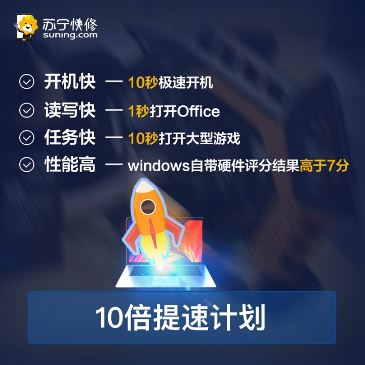 據(jù)了解,蘇寧快修電腦十倍提速服務(wù)共有兩種提速方案供用戶選擇。其一,機械硬盤電腦提速計劃,通過在機械硬盤電腦上加裝固態(tài)硬盤,將固態(tài)硬盤作為電腦系統(tǒng)運行盤,原機械硬盤作為電腦資料存儲盤;其二,固態(tài)硬盤電腦置換擴容計劃,將原有小容量固態(tài)硬盤替換為大容量固態(tài)硬盤,從而使電腦運行速度提升3-10倍。