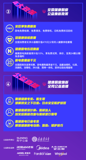 除免費贈送健康廚電外,蘇寧易購還推出了四項煥服務(wù)新政策。針對受災(zāi)地區(qū)廚電浸泡受損情況,提供廚房大電免費檢測、免費移機、免費拆舊回收等服務(wù)。消費者可以咨詢蘇寧門店,或登錄蘇寧易購APP、蘇寧云店微信小程序選擇對應(yīng)服務(wù)。面對全國日益高漲的廚電煥新需求,蘇寧易購推出了買凈水器送價值470元父母雙份健康體檢套餐的福利,參與廚電以舊換新活動還可享受最高補貼10%,至高享24期分期免息等福利,選購廚電套餐最高能省千元。