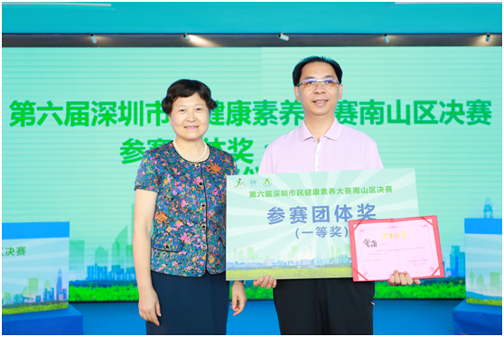 經(jīng)過必答題、搶答題、情景劇展示等三個環(huán)節(jié)激烈競賽后,粵海街道代表隊獲得一等獎,招商街道代表隊、桃源街道代表隊獲得二等獎,西麗街道代表隊、沙河街道代表隊、蛇口街道代表隊獲得三等獎等獎項。贏得大獎固然感到欣慰,讓更多的市民學(xué)習(xí)到更科學(xué)的健康知識,才是本次決賽的宗旨。讓我們用健康擁抱美好未來。