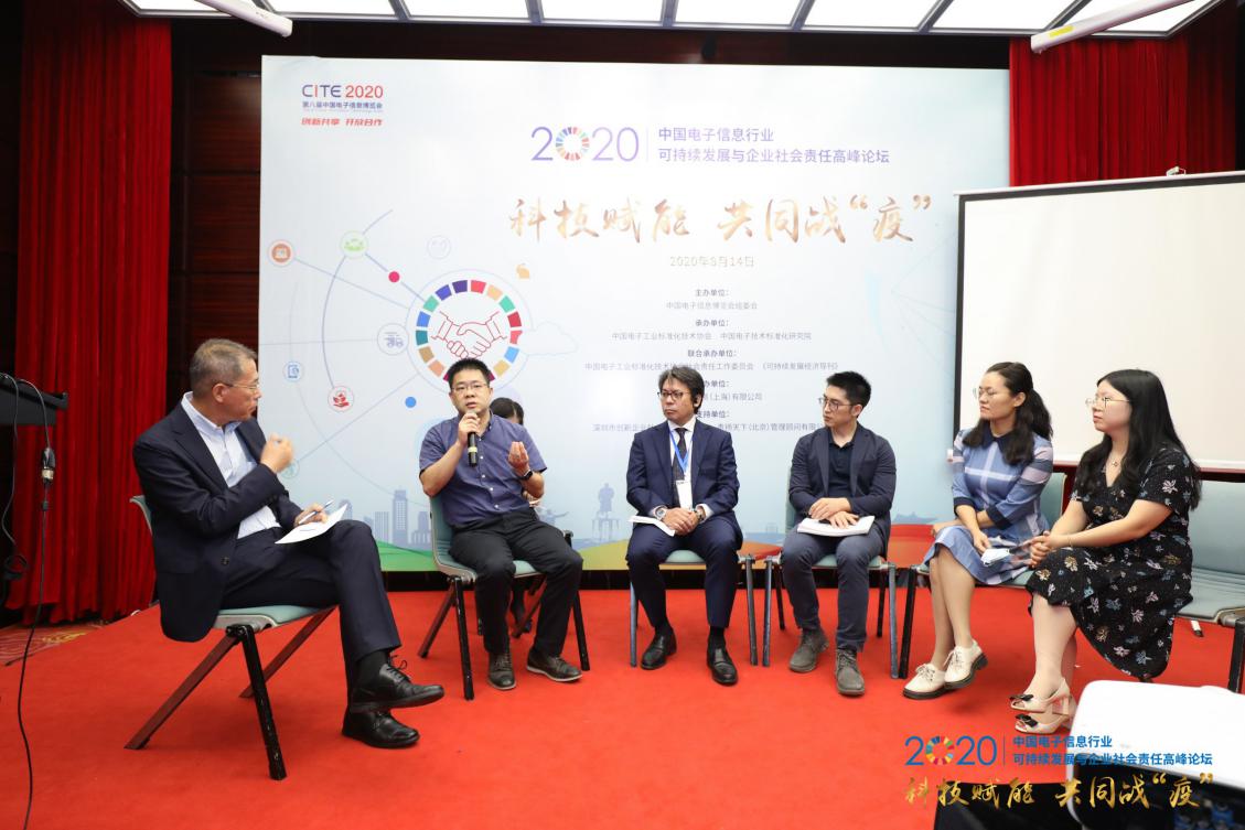 為更加全面生動地展現(xiàn)企業(yè)在抗擊疫情的典型實踐,論壇特別組織專題研討活動, 《可持續(xù)發(fā)展經(jīng)濟(jì)導(dǎo)刊》社長兼主編于志宏主持,中興通訊股份有限公司副總裁、無線架構(gòu)總經(jīng)理段向陽、索尼精密部件(惠州)有限公司董事總經(jīng)理小林克彥、騰訊公益慈善基金會項目總監(jiān)鄧江波、富士施樂高科技(深圳)有限公司CSR部長劉美華、深圳市創(chuàng)新企業(yè)社會責(zé)任促進(jìn)中心主任曾亞琳共同參與研討,各位嘉賓積極分享企業(yè)的優(yōu)秀實踐,交流對科技抗疫的觀點與看法,為電子信息行業(yè)的責(zé)任價值創(chuàng)造與創(chuàng)新帶來思考與提供借鑒。