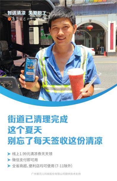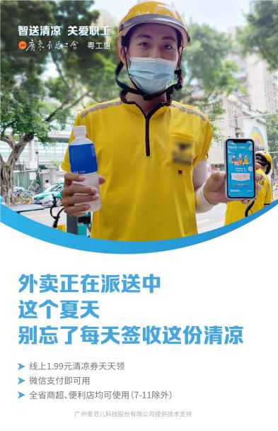 為了更好地服務(wù)戶外工作者,并結(jié)合當(dāng)前常態(tài)化疫情防控形式,廣東省總工會推出“夏季清涼線上領(lǐng)工會福利爽一夏”活動,將傳統(tǒng)的“送清涼”活動升級成線上移動互聯(lián)網(wǎng)的“智送清涼”模式,針對環(huán)衛(wèi)、快遞、外賣三個行業(yè)的戶外工作者,從7月30日到9月30日,給他們發(fā)放防暑降溫等飲品。