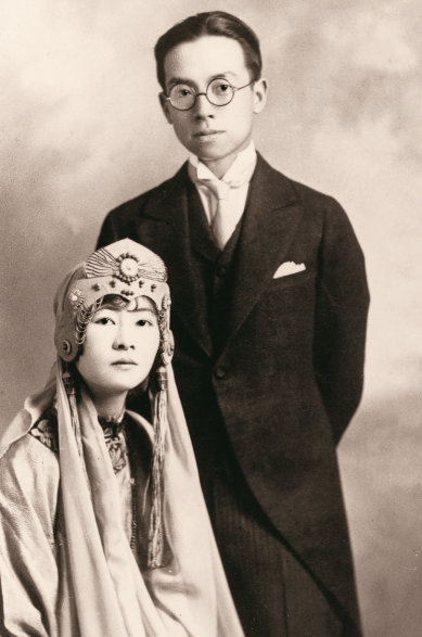 1928年3月,林徽因與梁思成在渥太華的中國駐加拿大總領事館舉行婚禮,此為林徽因穿著自己設計的結婚禮服與梁思成的合影。