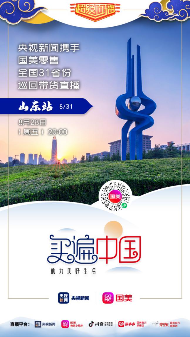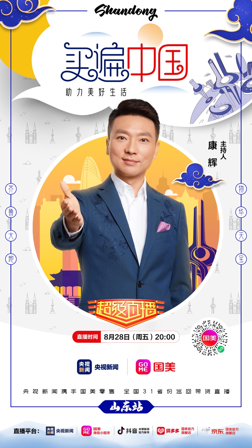 8月28日晚20點(diǎn),記得鎖定國美微信小程序、拼多多國美官方旗艦店、京東國美官方旗艦店,及央視新聞的客戶端、抖音號,“買遍中國”山東站直播間,一起來看“央視大 boy”康輝帶貨狂奔?。ǔ\娖剑?/p>
