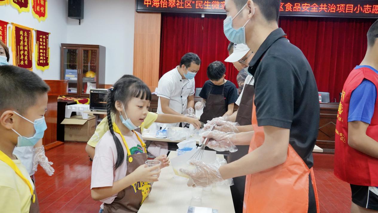 在隨后展開的小志愿者實(shí)驗(yàn)課堂活動中,通過體驗(yàn)食品安全快速檢測實(shí)驗(yàn)、學(xué)習(xí)蛋撻制作兩方面增進(jìn)對食安知識的了解。