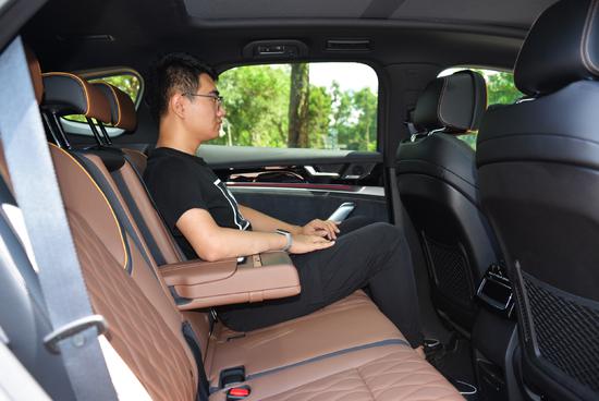 從車外進入車內(nèi),打開門第一眼看到的就是這個寬大且舒適的真皮座椅,這也是凸顯內(nèi)飾豪華感的重要部分。偏向于運動風格的座椅對于身體的支撐非常到位,從臀部到肩膀都能提供良好的支撐,前排還提供了可伸縮的腿部支撐設(shè)計,讓你久坐不累,這是對一臺豪華車座椅的基本要求。