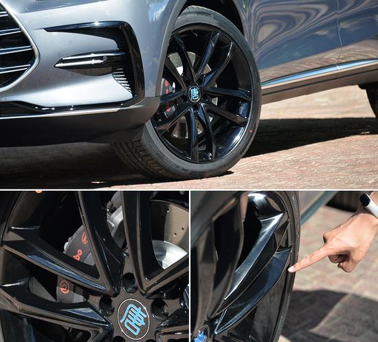 22英寸來自馬牌的265/40R22運動系列輪胎,配合純黑色鋁合金輪轂,配合Brembo品牌(鮑魚)制動卡鉗,在視覺以及制動效果上表現(xiàn)的無可挑剔。