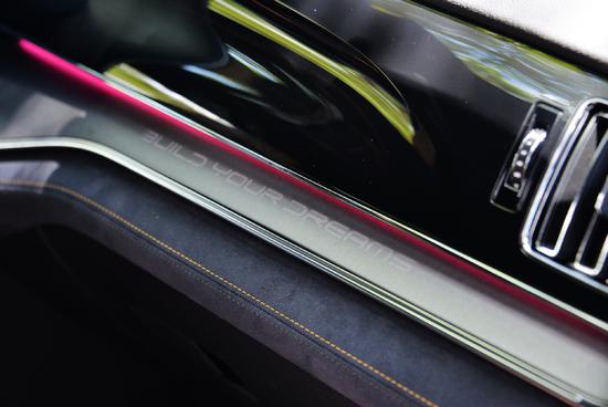 中控臺使用了搪塑、鋼琴烤漆、啞光鍍鉻、金屬拉絲、超纖高檔類麂皮五種材質(zhì)進行拼接,每一種材質(zhì)的大小和明暗都經(jīng)過細致的考量,就連用的金色縫線也是經(jīng)過多輪顏色比對,以達到內(nèi)飾整體色調(diào)與設(shè)計的完美統(tǒng)一。