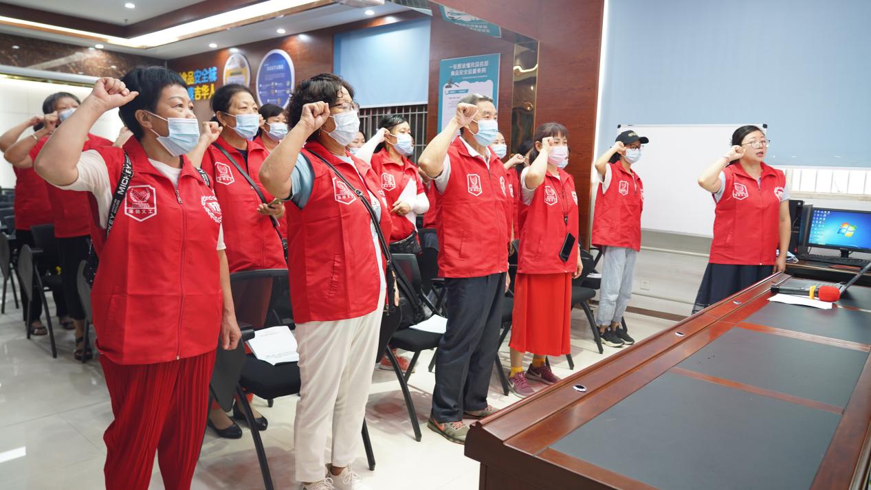 在老師的領(lǐng)誓下,志愿者宣讀了志愿者誓詞