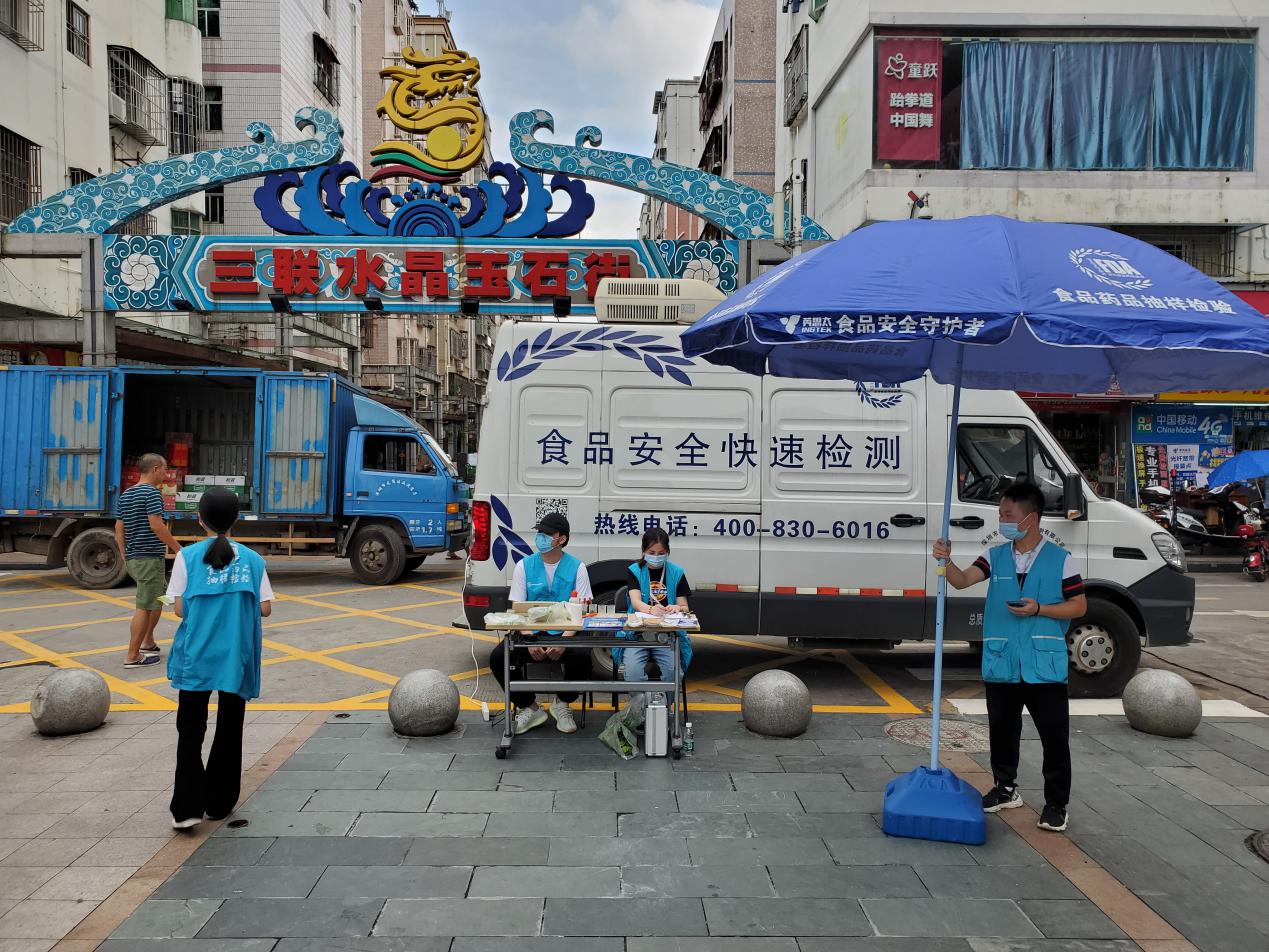 “你送我檢”免費(fèi)檢測(cè)是深圳市極具特色的“快檢”服務(wù)。街道食品安全“快檢車”來到活動(dòng)現(xiàn)場(chǎng)為轄區(qū)居民提供現(xiàn)場(chǎng)快速檢測(cè)服務(wù),同時(shí)宣傳街道食品智能便民送檢柜的放置地點(diǎn),讓農(nóng)殘檢測(cè)真正直接走入群眾,為居民帶來方便。