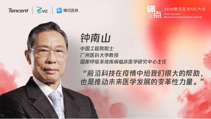 鐘南山院士在寄語2020騰訊醫(yī)學(xué)ME大會(huì)時(shí)提到:“馬化騰先生曾說過,互聯(lián)網(wǎng)的任務(wù)是解決用戶的痛點(diǎn)。這跟醫(yī)學(xué)的使命很像,我們是解決人類最根本的痛點(diǎn)——生命之痛?!睆?003年的非典,到2020年的新冠,呼吸病學(xué)專家鐘南山院士一直奔赴在疫情的第一線。2003年面對(duì)來勢(shì)洶洶的非典,他說:“把重癥病人都送到我這里來。”2020年,83歲的他第一時(shí)間奔赴武漢,堅(jiān)定表示:“武漢一定能過關(guān)”。
