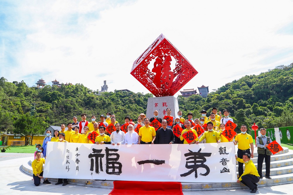 作為有口皆碑的福山,觀音山上福文化及元素隨處可見,福墻、健康福道、五福林、第一福等,皆是景區(qū)內的特色風景線。其中人氣較高的當屬觀音山第一福,位于景區(qū)山頂感恩廣場,是由康熙御筆“?!弊譃楹诵脑兀黧w為紅色,玲瓏鏤空立方體,設計精巧,制作精良。其支撐的支柱側設有轉盤,市民游客可通過轉盤轉動頂部的第一福,寓意著轉福接福,平安健康,福氣滿滿,這也是廣大游客來此必打卡的網(wǎng)紅項目。