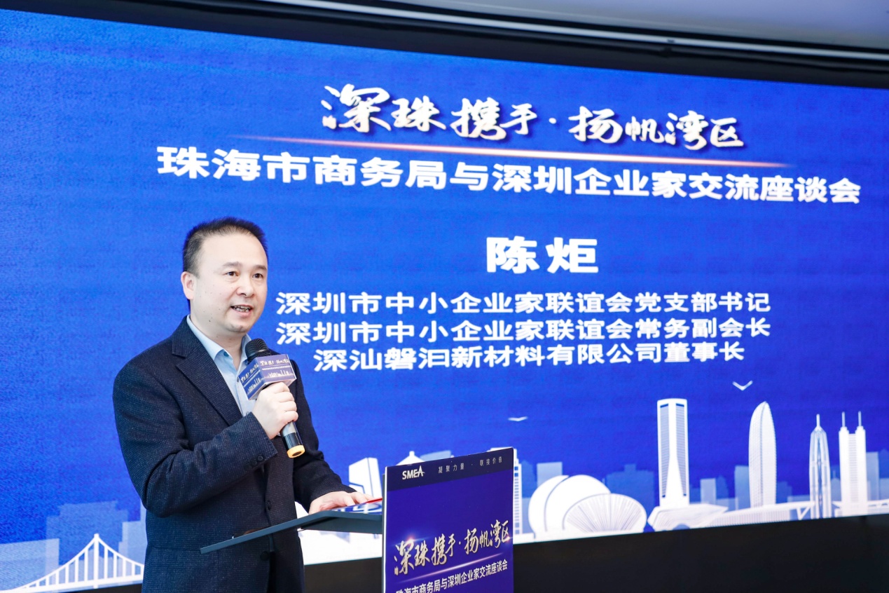 深圳市中小企業(yè)家聯(lián)誼會黨支部書記、深圳市中小企業(yè)家聯(lián)誼會常務(wù)副會長、深汕磐汩新材料有限公司董事長陳炬致辭