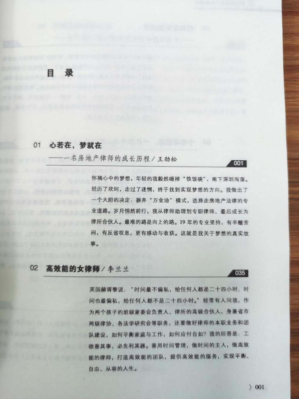 該書真實的披露了九位律師專業(yè)成長的故事和鮮為人知的心路歷程。這九位律師中,有毅然放棄“鐵飯碗”只身闖深圳,成為房地產(chǎn)專業(yè)律師的王勁松;有不甘于平淡生活,由一名普通公務員轉(zhuǎn)變?yōu)槭聵I(yè)家庭兩不誤的女律師李蘭蘭;有熱心公益、筆耕不輟,無私貢獻社會價值的陳偉;有從對自然的熱愛到最終選擇環(huán)保法律專業(yè)的陳旭緋;有跨行轉(zhuǎn)入歷經(jīng)挫折,從家事律師到家族律師的杜芹;有從非法本畢業(yè)生入行時的迷茫到如今篤定、睿智的羅振輝;有堅守刑事辯護,鉆研、開拓十幾年如一日的黃云;有知行合一熱衷勞動法律的團隊帶頭人曾凡新;有赴美求學不忘初心,長期耕耘涉外法律服務的潘立冬。