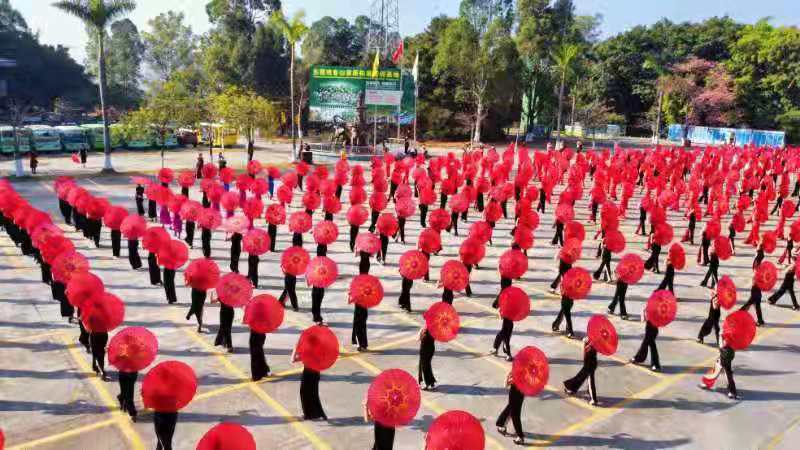 12月22日上午,觀音山會(huì)展中心廣場(chǎng)精彩不斷,作為2019—2020年?yáng)|莞市旗袍文化藝術(shù)協(xié)會(huì)總結(jié)表彰大會(huì)暨首屆旗袍文化藝術(shù)節(jié)的重磅開(kāi)場(chǎng)節(jié)目,不僅有旗袍與紅色油紙傘相結(jié)合的《中華情》舞蹈表演,還精心準(zhǔn)備了旗袍與折扇相結(jié)合的《粉墨情緣》舞蹈表演,讓現(xiàn)場(chǎng)的領(lǐng)導(dǎo)嘉賓及游客們大飽眼福,連連稱贊。伴隨著一曲優(yōu)美動(dòng)聽(tīng)的《中華情》響起,千余名旗袍佳麗撐著紅色油紙傘,整齊排列。旗袍佳麗們優(yōu)雅舞動(dòng)起來(lái),吸引不少游客圍觀、拍照。