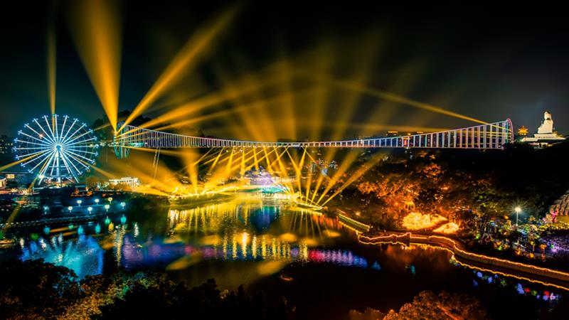 2021年是農(nóng)歷丑牛年,隱賢山莊特別推出了“與牛共舞”和小丑互動(dòng)節(jié)目,景區(qū)選取了傳統(tǒng)文化里具有勤勞實(shí)干品質(zhì)的“?!睘殚_年使者,讓大家與可愛的萌牛共舞,再配上幽默搞笑的小丑與游客互動(dòng),貼合“丑?!钡男履曛黝}?!澳Щ每兹腹取笔且钥兹腹鹊亩嗖熟o謐的環(huán)境為背景,由國內(nèi)知名魔術(shù)師現(xiàn)場(chǎng)表演近景魔術(shù),比熒幕觀賞更有逼真和神秘的效果。“風(fēng)情加勒比”將在加勒比民族舞臺(tái)上演云南佤族特色舞蹈,讓東莞游客不出遠(yuǎn)門就能體驗(yàn)到異域風(fēng)情?!拌仓埂笔窃陔[賢山莊的網(wǎng)紅橋——3D玻璃橋演繹瀑布燈光秀,空中七彩燈光閃耀,與隱賢湖水交相輝映,猶如置身唯美的天上街市?!谤o橋浪漫”是隱賢山莊專門為有情人預(yù)備的一份節(jié)日禮物,在喜鵲的簇?fù)砗鸵魳返陌樽嘞?,他們從鵲橋的兩端緩緩走向?qū)Ψ剑瑢⒅腥A民族流傳千年的牛女相會(huì)的愛情故事由神話變成現(xiàn)實(shí)。