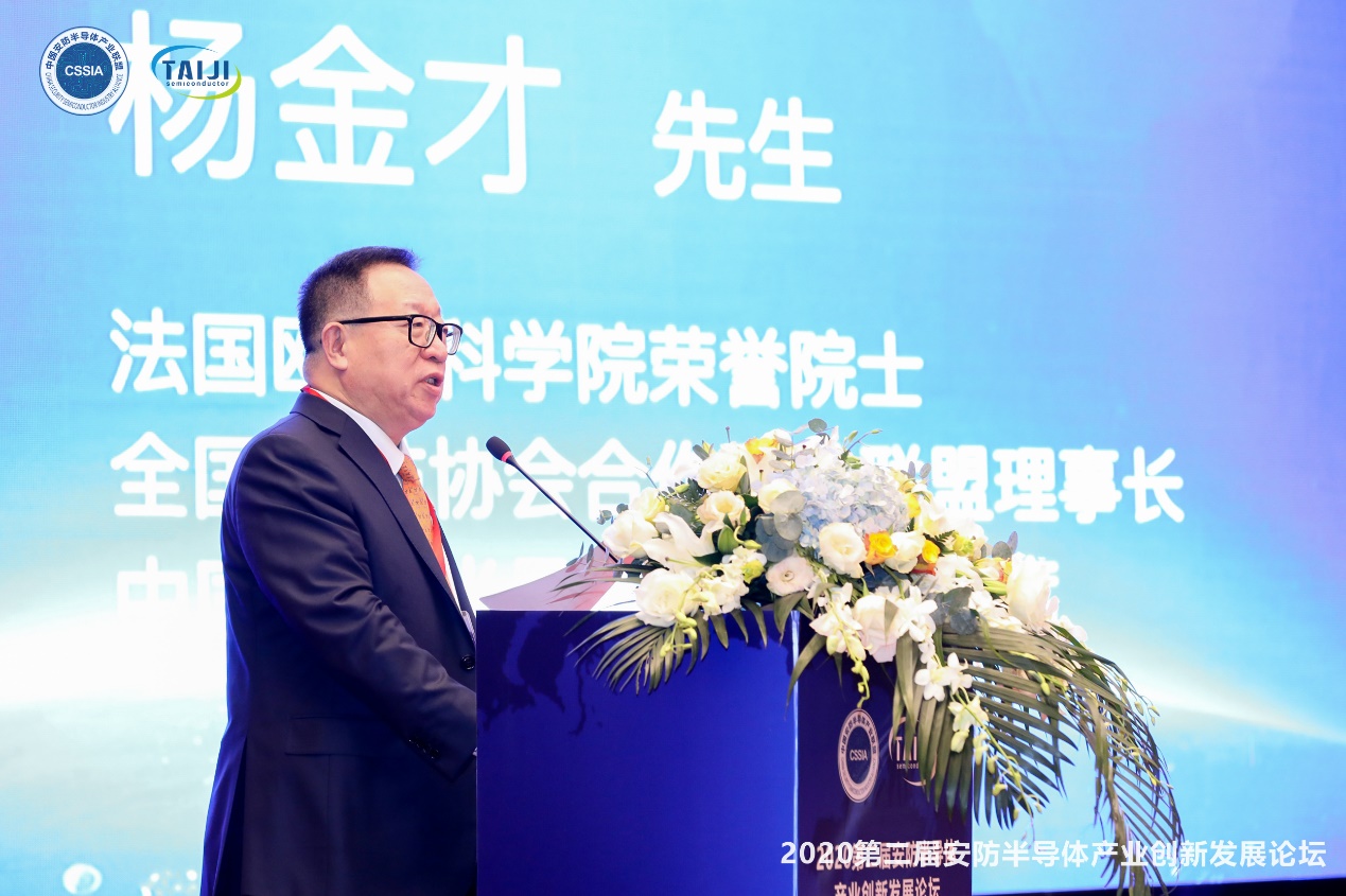 法國(guó)歐洲科學(xué)院榮譽(yù)院士、全國(guó)安防協(xié)會(huì)合作互助聯(lián)盟理事長(zhǎng)、中國(guó)安防半導(dǎo)體產(chǎn)業(yè)聯(lián)盟主席楊金才致辭