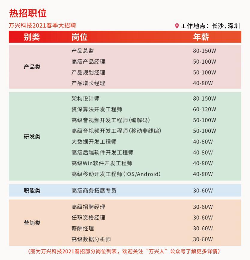 根據(jù)招聘信息顯示,萬(wàn)興科技此次聚焦“引才入湘”,向全球精英拋出橄欖枝。此外,還大力推行“拿深圳同等高薪,住長(zhǎng)沙宜居房子,干全球軟件事業(yè)”的人才引進(jìn)策略,旨在以一線城市的薪資,匹配一線大廠的薪酬福利,吸引高端人才到長(zhǎng)沙安家置業(yè)。