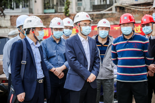 李卓一行在門口測溫登記后進(jìn)入施工區(qū)域,實地調(diào)研了項目施工進(jìn)度,同時聽取項目負(fù)責(zé)人詳細(xì)介紹了項目春節(jié)期間施工部署等相關(guān)情況,對項目周密詳細(xì)的安排表示肯定。