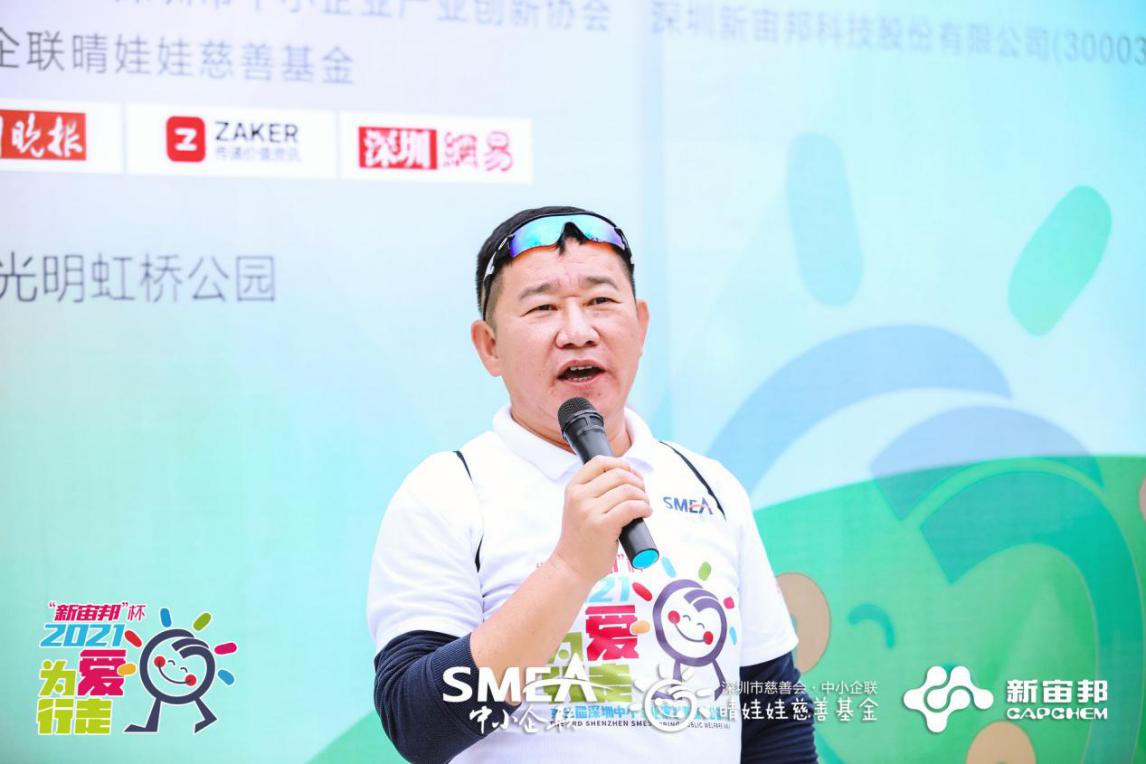 深圳中小企聯(lián)會長、深圳市杰科電子有限公司董事長黃榮添為開幕式致辭。他表示:“感謝新宙邦對本次慈善公益徒步活動做出的貢獻(xiàn),以及今天參加此次活動的愛心企業(yè)家、愛心人士們的大力支持,我代表深圳中小企聯(lián)感謝大家的參與,今后也希望通過各類活動讓更多愛心人士關(guān)注我們“晴娃娃”,給更多的孩子送去關(guān)愛,能讓他們綻放開心的笑容?!?/p>